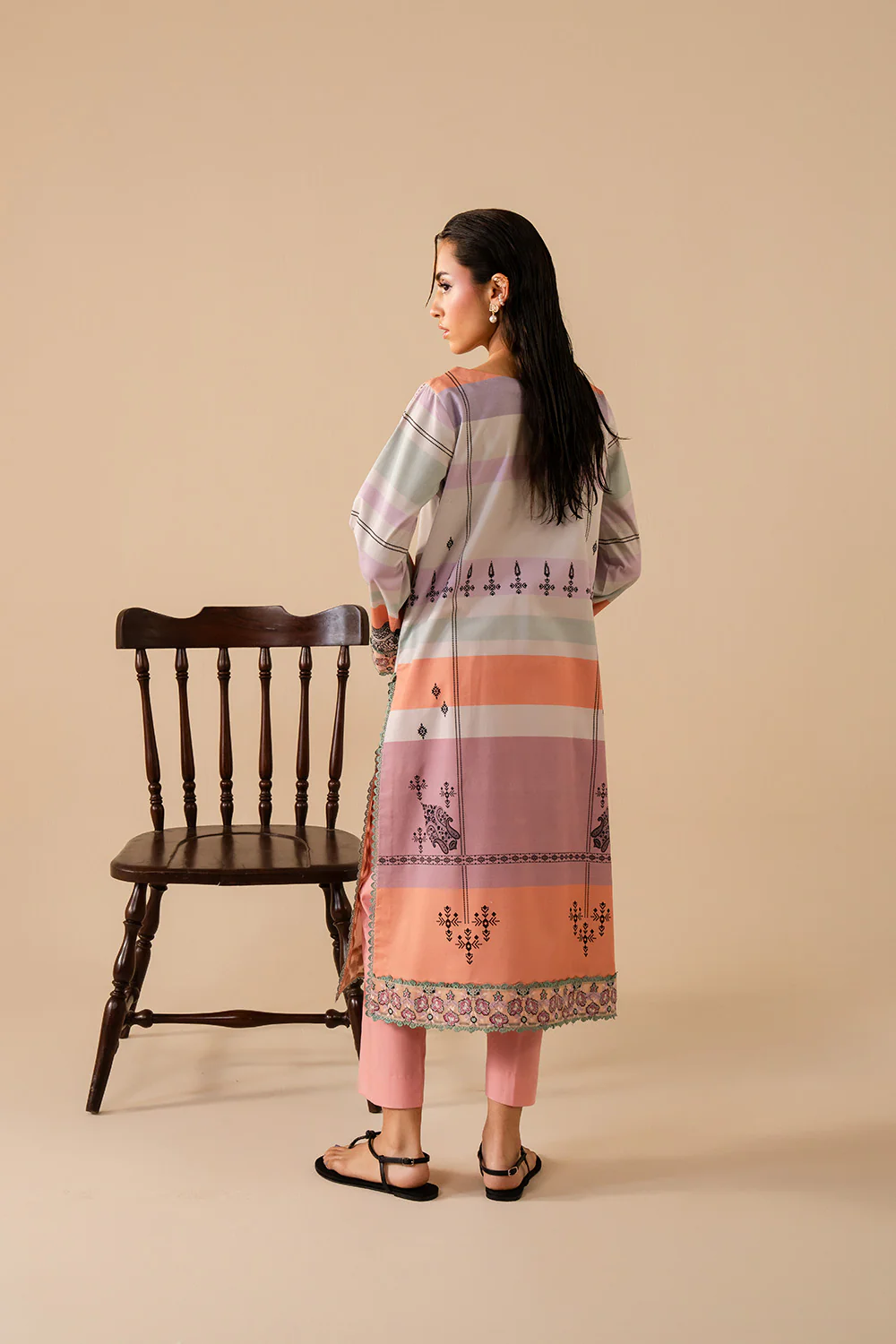 Shirt Fabric: Printed Lawn Shirt Adorned with an Embroidered Patch.